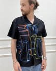 Camicia color nera con stampa pantry multicolor Obey. Modello con collo a camicia, vestibilità over, chiusura con bottoncini centrali e mezza manica. In cotone 100%.