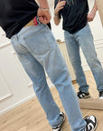 Jeans relaxed straight lavaggio chiaro. Modello dritto con tasche laterali e sul retro. Chiusura con zip e bottone. Dettaglio di etichetta logo sul retro.