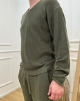 Maglia verde militare scollo a v con rotture