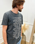 T shirt grigio con stampe scritte bianche